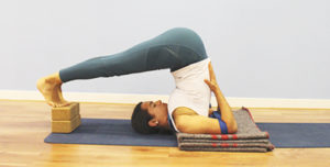 Las funciones que van a desempeñar las mantas son dos: amortiguar el contacto del cuerpo con la esterilla y “subir” el suelo. Esta última permitirá crear espacios a nivel cervical por ejemplo, para evitar cargar mucho peso en las vértebras y permitir la práctica de asanas invertidas a personas con ciertas limitaciones orgánicas.