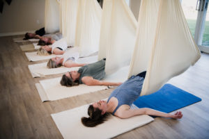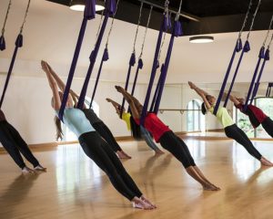 Las inversiones en el columpio generan una presión contraria a la de la gravedad, que beneficia a nuestro suelo pélvico. Junto con el trabajo consciente y la respiración adecuada, el Yoga en columpio es una práctica que puede favorecer la recuperación y prevención tanto para mujeres y hombres.